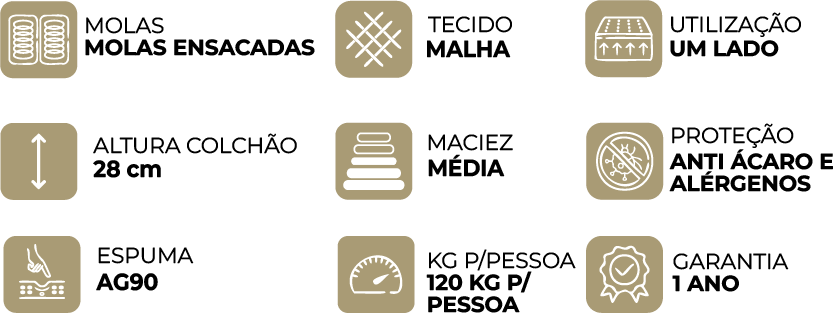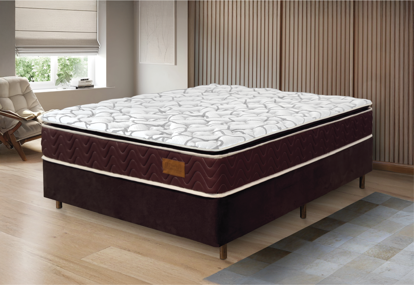 Seu bordado com espuma D20, garantem4 cm de conforto extra em um Pillow Top, combinado com uma camada de AG90, alia conforto e aconchego para uma noite relaxante. Com sua estrtura reforçada com uma camada de AG90 de 3 cm, sua durabilidae e conforto se tornam seu principal diferencial.