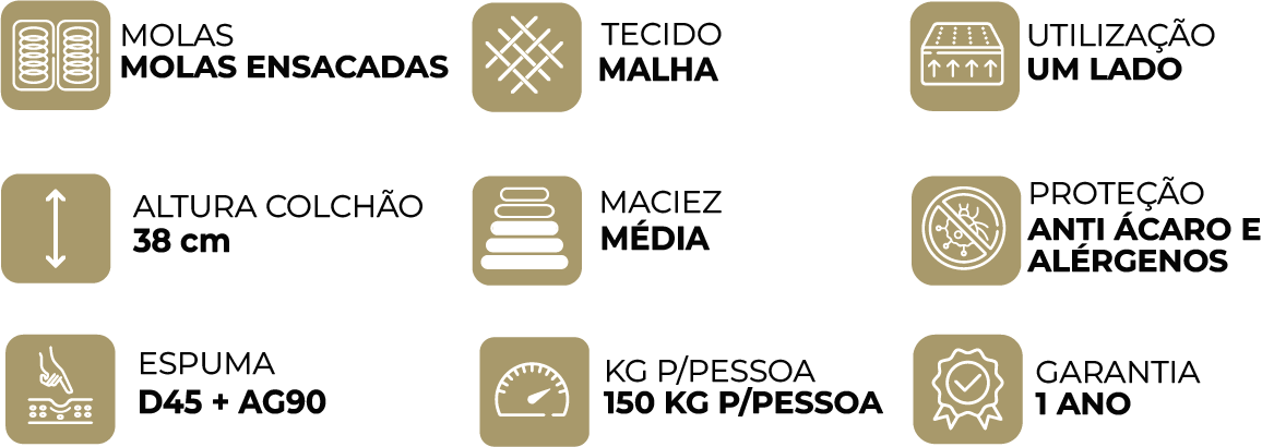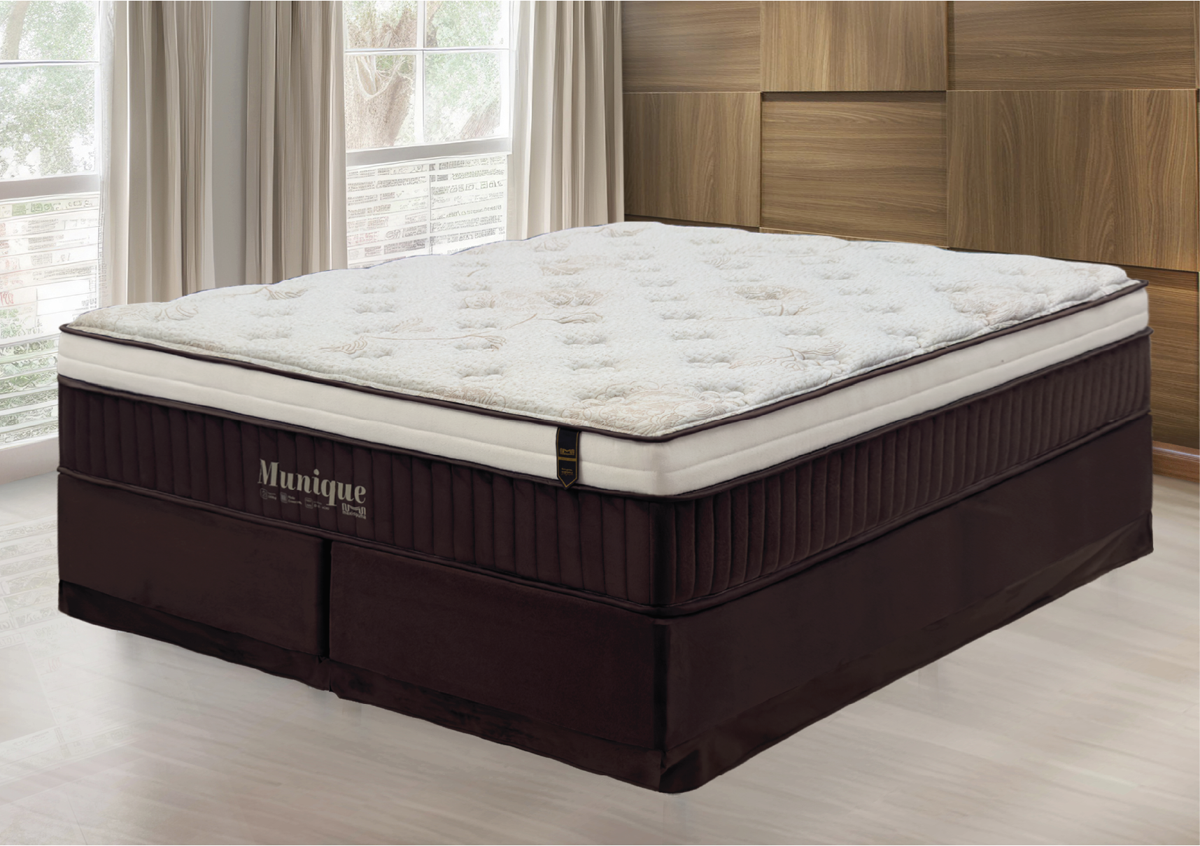 Revestido com tecido de malha bordado e acabamento aveludado, o Munique une maciez, estilo e conforto. Seu sistema de molas ensacadas que garante suporte individual e noites tranquilas, mesmo com movimentos. Ideal para quem valoriza bem-estar e elegância no quarto.