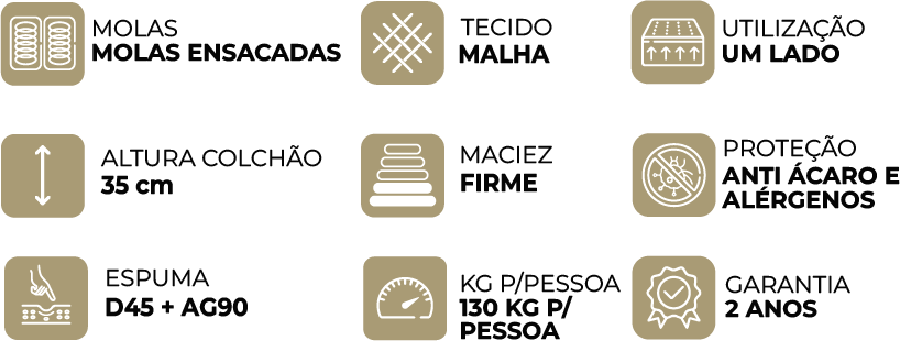 O revestimento em tecido de malha bordado com a espuma SoftMax (D24) de 2 cm oferece uma superfície suave e aconchegante para o corpo, promovendo um toque delicado e um descanso imediato. Logo abaixo, uma camada de espuma (D20) de 2 cm complementa o conforto, proporcionando maciez adicional sem abrir mão do suporte.